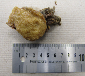 After consulting the Willed Body Program director to obtain permission for advanced investigations and data collection, the student (RM) proceeded with further investigation and processing of the mass under the mentorship of the pathologist (author PK), anatomy faculty (author LK) and prosection specialist (author WM).