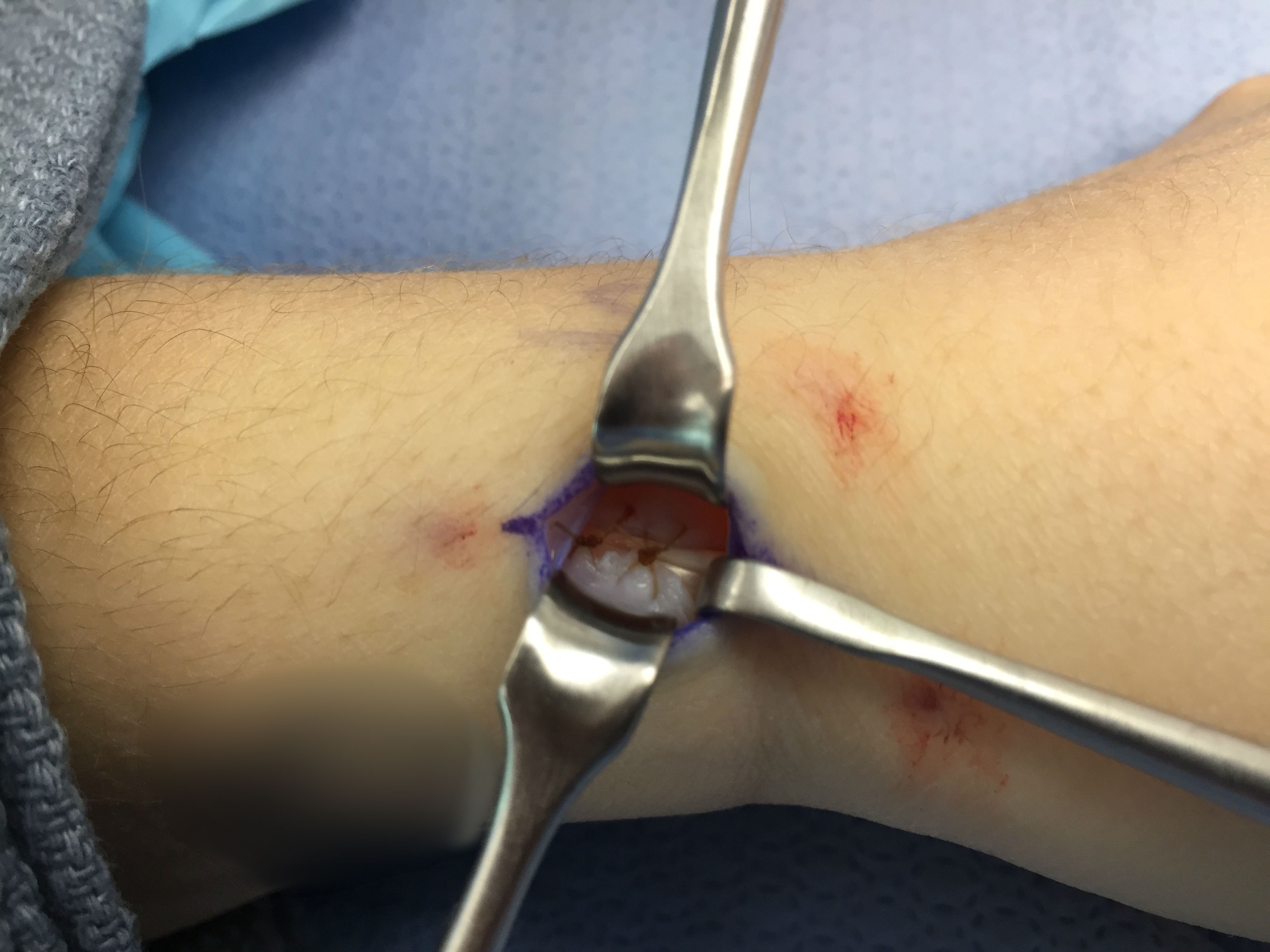 Symptomatic relief from Dequervain’s disease has been attempted through conservative and invasive treatments.5 After failing conservative attempts, surgical procedures have historically involved release of the first dorsal compartment and septum, followed by debridement of synovitis.5 However, this procedure is not without risk, and complications include nerve injury, tendon subluxation, and inadequate release of the compartment.6