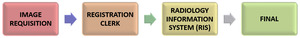 At the authors’ community-based institution, CPOE has been implemented for hospital radiology imaging orders with direct population of order information into the RIS. At the time of this project, this was not the case for the institution’s clinic-based orders. When patients presented for clinic imaging, they provided a registration clerk with a hard copy imaging order requisition from the referring physician. These forms could either be standardized fillable forms or written narrative note prescriptions. A radiology transcription clerk then manually transcribed the imaging order information into the RIS. Picture archiving and communication system (PACS), Merge RadSuite11 was also used to convey imaging order indications, the imaging modalities ordered, and other pertinent patient information to the radiologist who later interpreted the imaging results. An overview of the general process at the authors’ healthcare system is depicted in Figure 1.