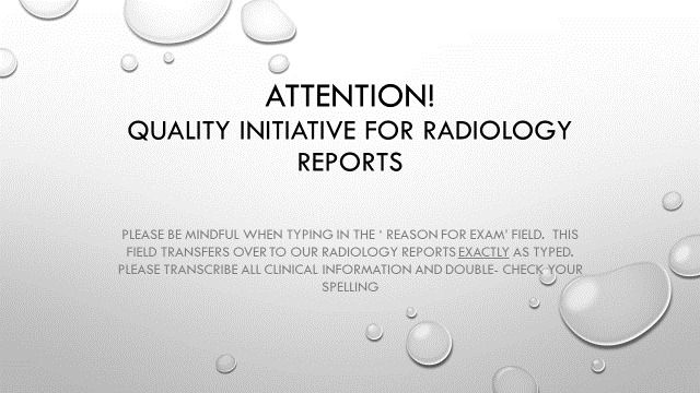 The transcription of inaccurate and incomplete radiologic imaging order information remains a persistent problem in many settings.1,2 The entry of accurate information concerning the indications for an imaging order (i.e., reason radiologic procedure was ordered) and adequate patient history can impact the quality of reports, frequently affecting patient safety and imposing billing problems.1–6 Prior studies have revealed that as many as 30% of imaging order requisitions can lack adequate clinical order indications, and up to 24% can lack vital patient information for proper image interpretation.3,5